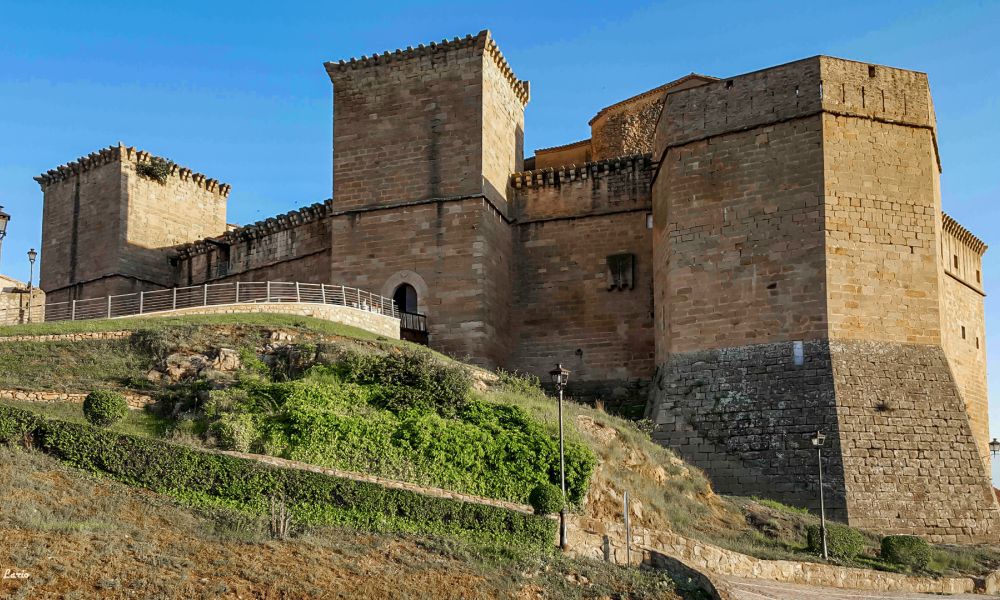 Disponemos de parking gratuito en la propia explanada del castillo, pero si encuentras este aparcamiento completo, acércate al pabellón del pueblo y verás otro parking con, además, poste para recargar vehículos eléctricos.